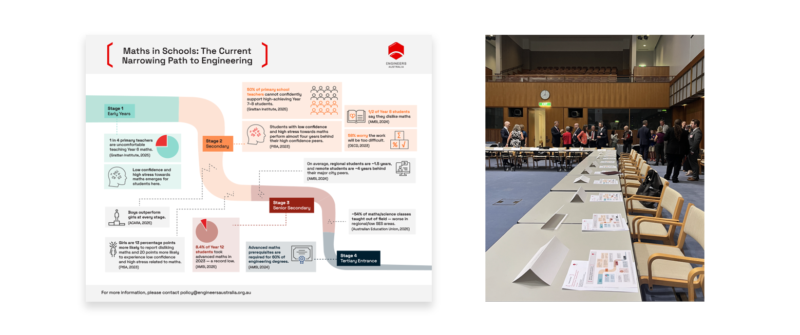 A4 infographic flyer designed for the ‘Maths in Schools’ event held in Parliament House.